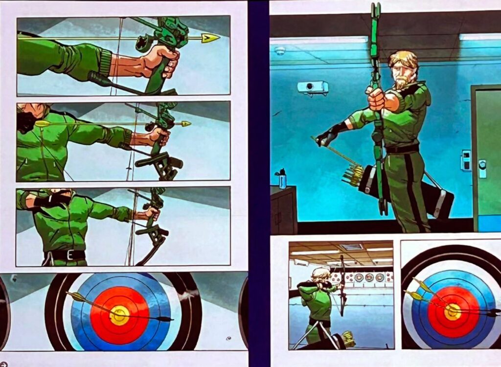 Como no universo tradicional, essa versão de Oliver Queen é um bilionário, mas aqui ele faz parte de uma cabala de pessoas poderosas (incluindo Ra’s Al Ghul e Coringa), malignas e que controlam o mundo nas sombras. E serão as ações desse grupo que levarão Oliver a agir como Arqueiro Verde.