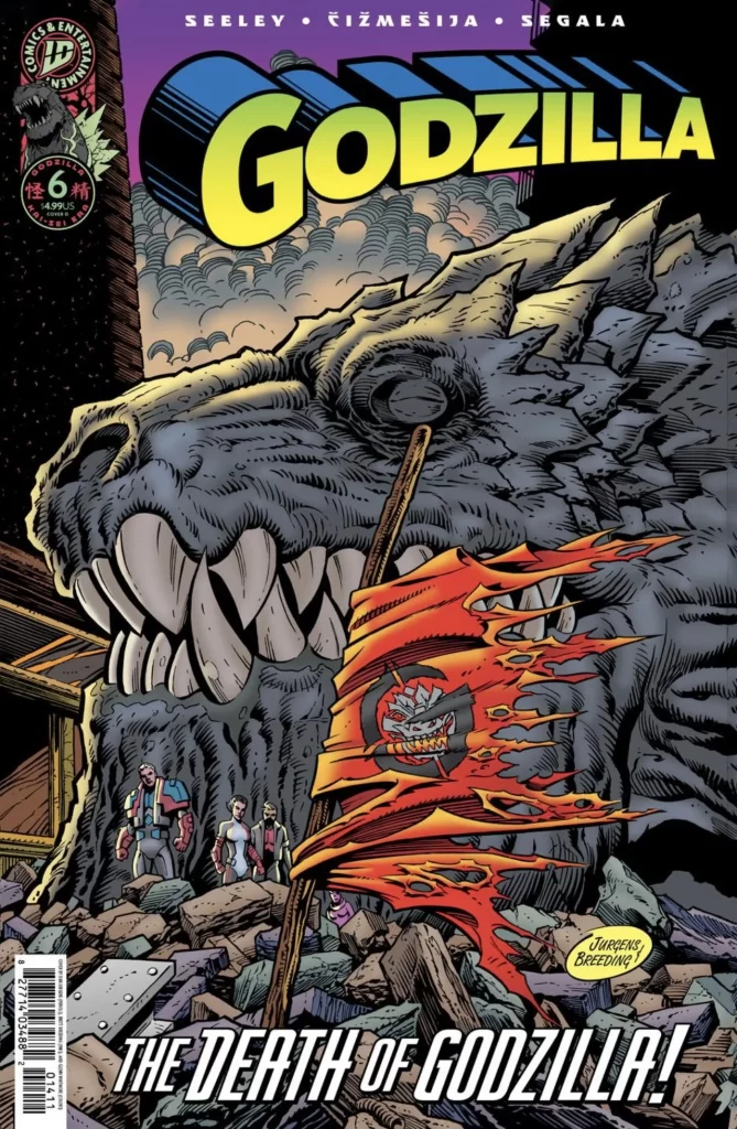 A IDW Publishing anunciou que Godzilla #6, a ser lançada em janeiro, apresentará a morte do Rei dos Monstros. É óbvio que o obituário será apenas passageiro, mas pelo menos a edição terá uma capa por Dan Jurgens, homenageando a morte mais famosa das HQs, a do Superman, da qual ele foi o principal autor.
